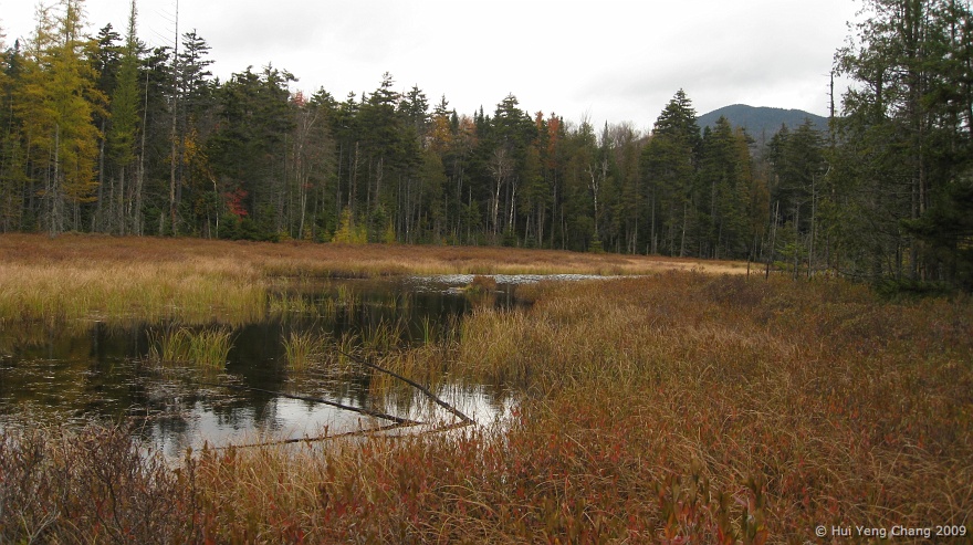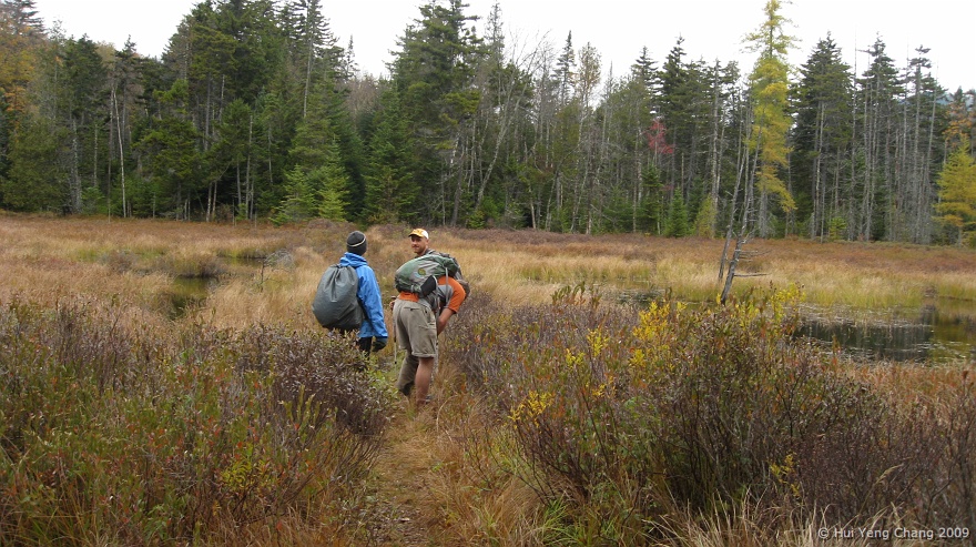 Two of us took our sweet time strolling down the beautiful Calkins Brook trail. But once we arrived at the junction of the horse trail and the trail to BlueBerry Lean-To, the sign at the junction reminded us of a long 9.1 miles back to Duck Hole. The trail to Blue Berry Lean-To was as bad as the trail to Duck Hole, if not worse. We set one destination at a time in order to break down the 9.1 miles to shorter goals. First the trail junction to Seward, where we started this morning, then the lean-tos along the horse trail (Ward Brook truck road), we figured once we get to the swamp, we'll be on the home stretch.