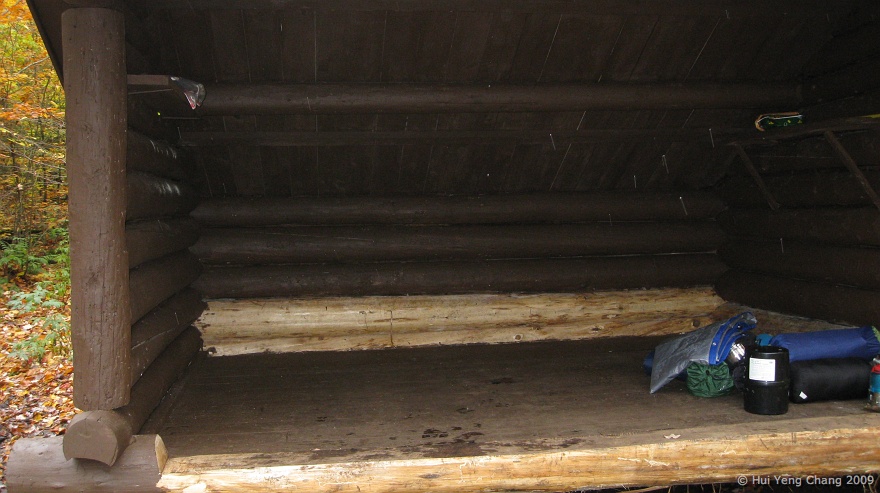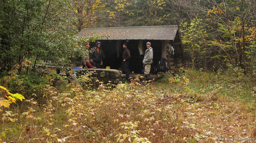 The headlamp went on shortly after we passed the 2 lean-tos along the horse trail. The hike back to the swamp was long but uneventful. Once passed the swamp, it began to snow lightly. I was so happy to see there were fire at the Cold River 2 lean-to, I just shouted out a "Hi" to the strangers. Next thing we saw was the trail to Bradley Pond followed by the register box and the junction to our lean-to! Wooohoo!!