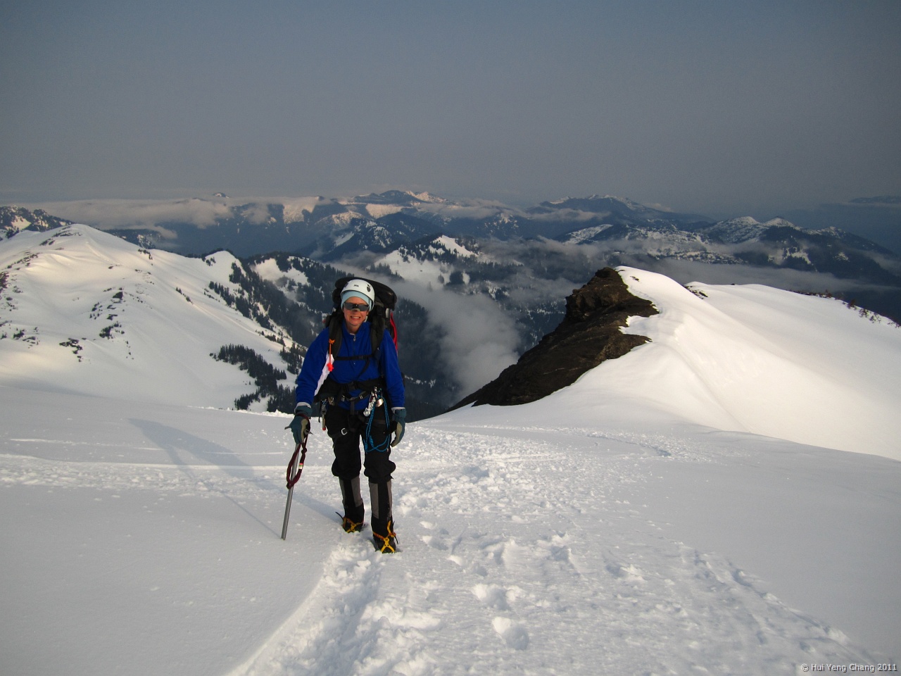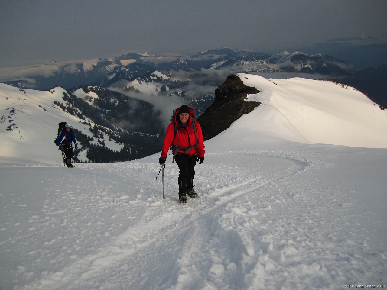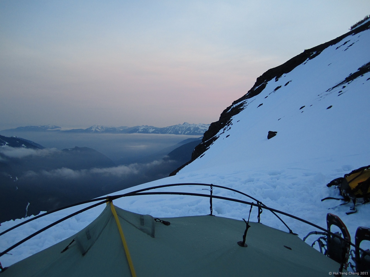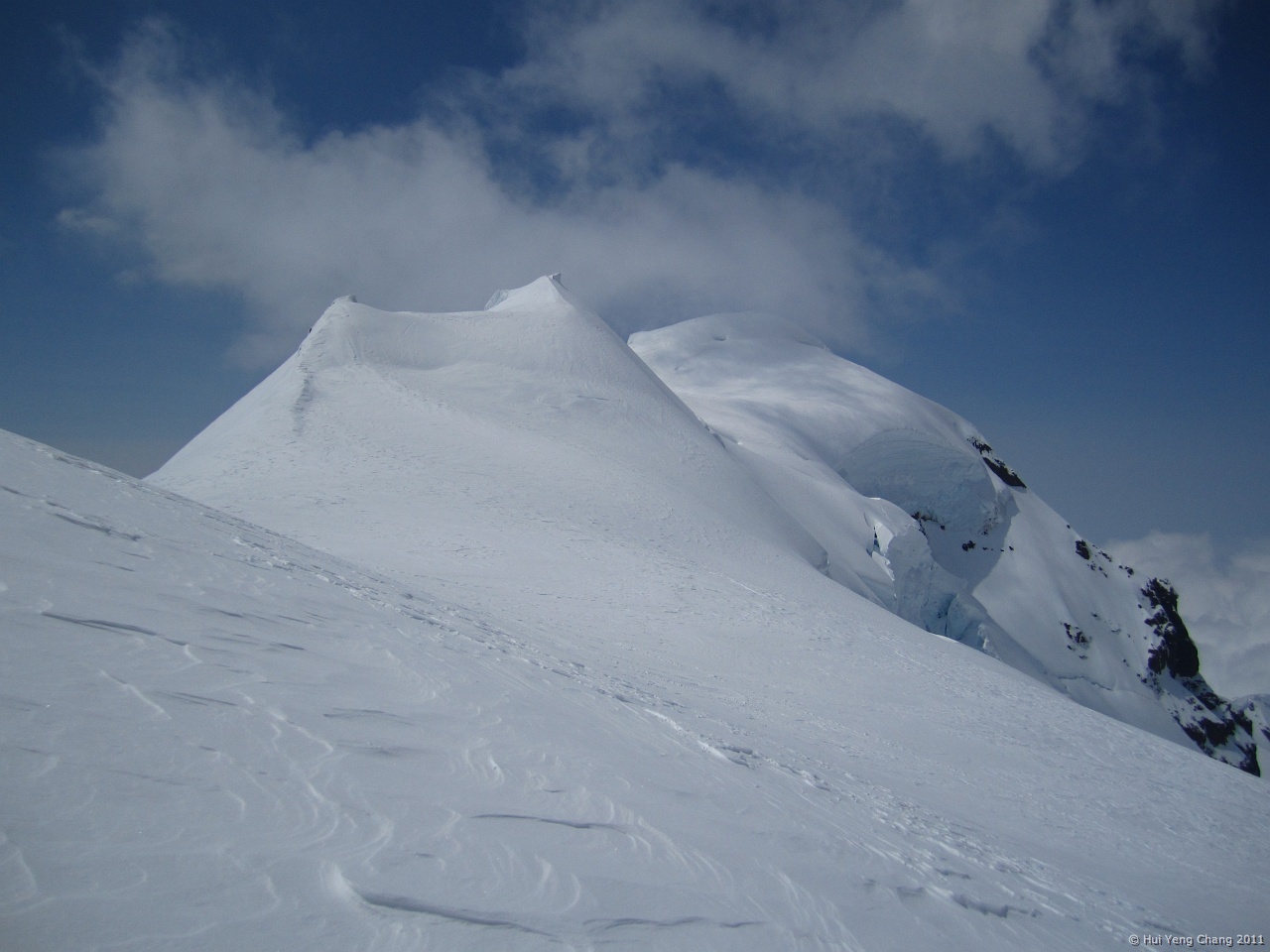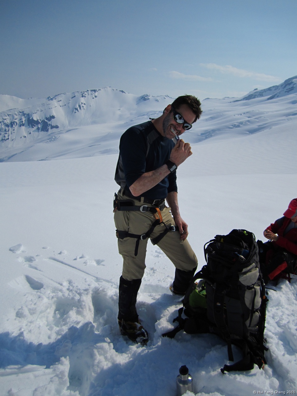 Anyway, so all four of us made it to the summit together, and Lei arrived shortly after! The climb back to the camp was a morale bashing, spirit crushing experience. We're clouded in as soon as we climbed below the saddle, with almost whiteout conditions and freaking postholing on every step we took, we slogged and cursed our way back to the camp around 8 PM. Thanks to Kim, who had been busy melting snow for us, we had plenty of water to rehydrate.