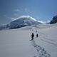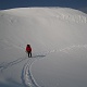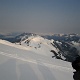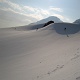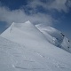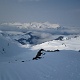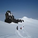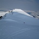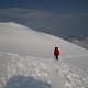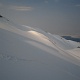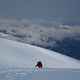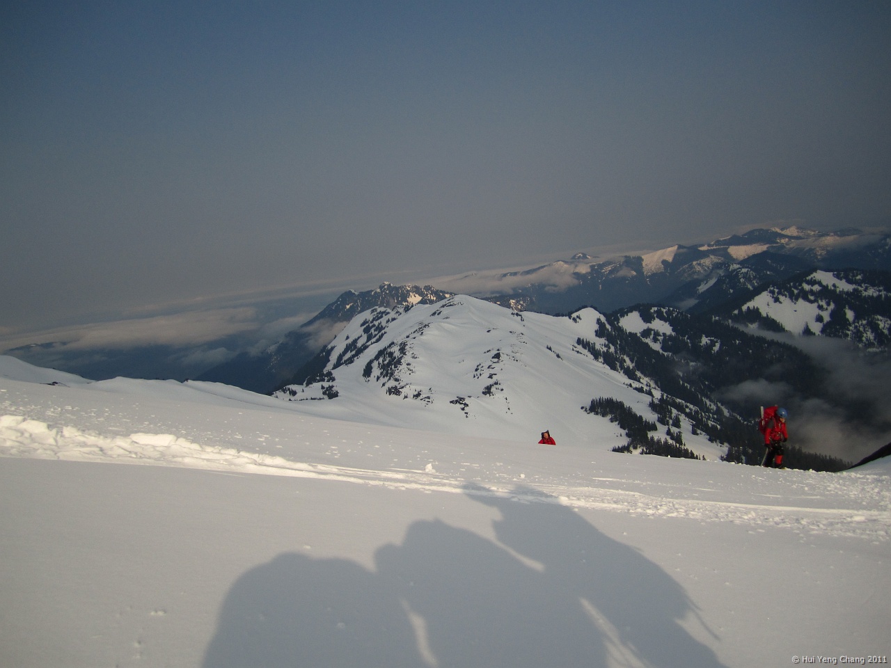 Step by step, I slowly made my way up the steepest section just below the summit crater. If the skiers didn't tell me the summit was another 20' climb away, I would have thought the snowed-in flat crater was the summit. As I was stumbling around looking for a 20' bump to climb, I saw the trio walking toward a tiny snow cone. As it turned out, when they reached the crater, it was clouded-in, they couldn't see anything taller and thought they're on the summit, only as the cloud cleared, then they saw the summit cone. Pretty funny. I can imagine the "D'oh!" moment.