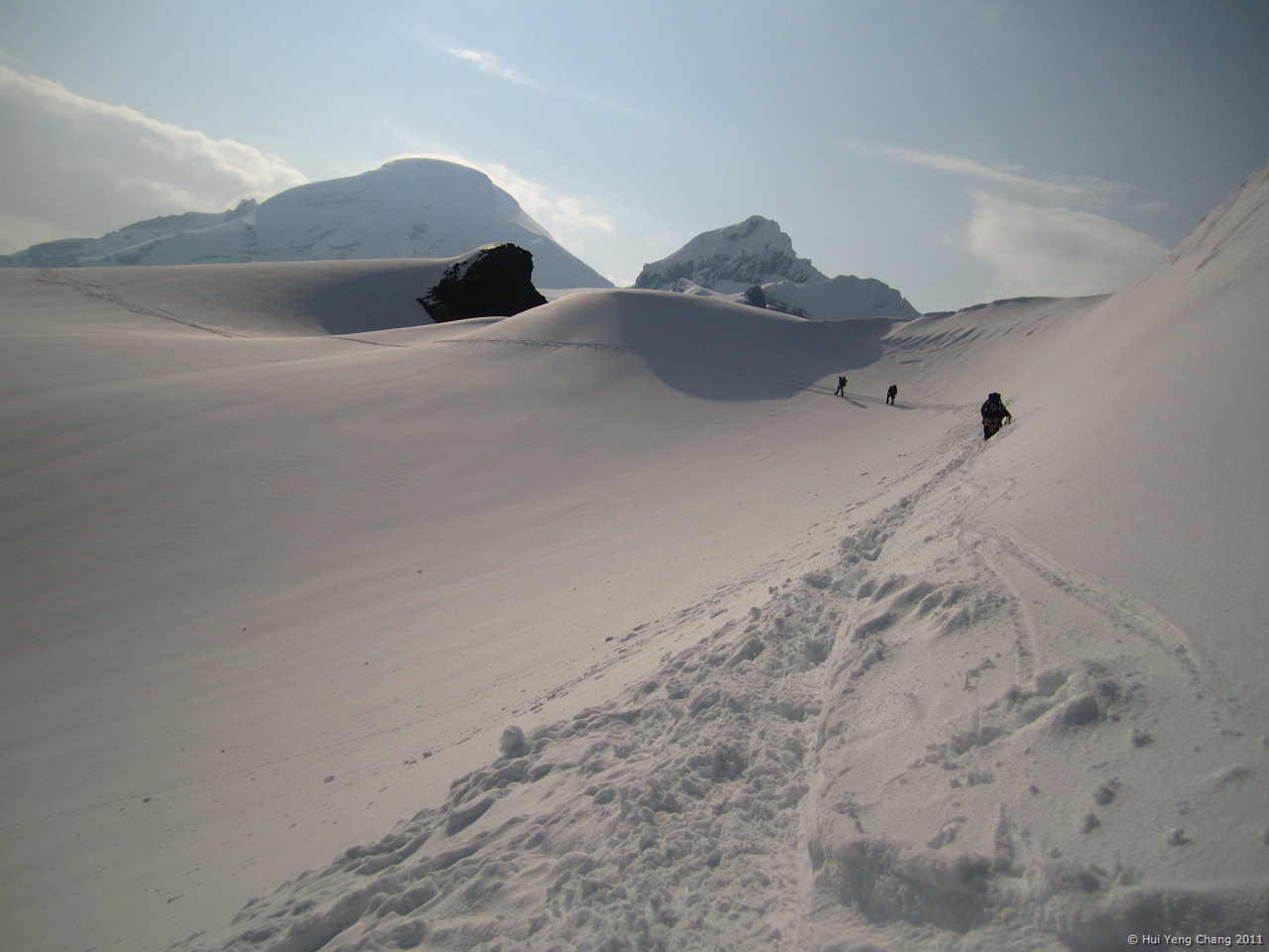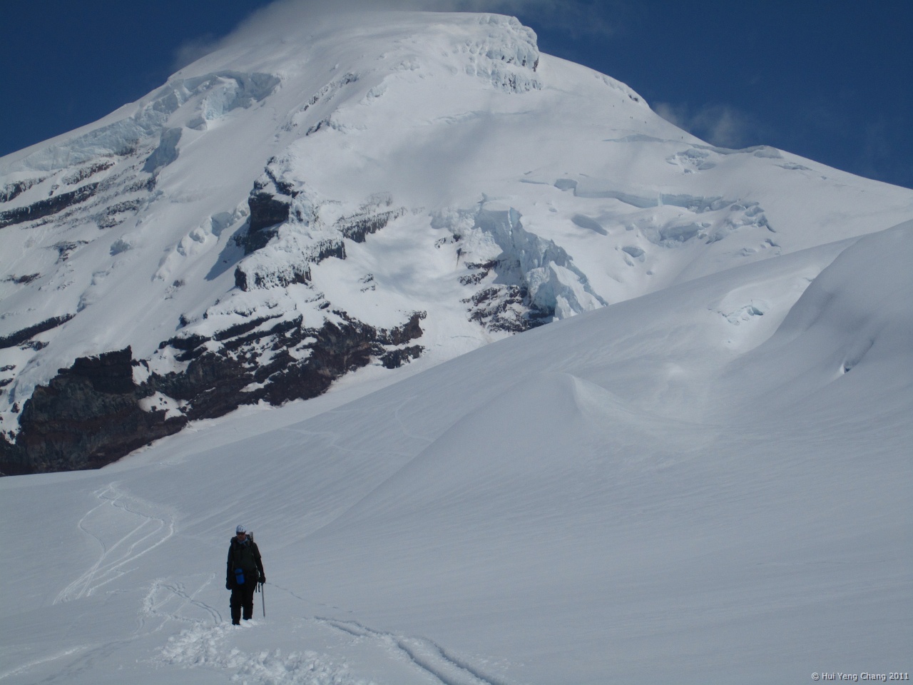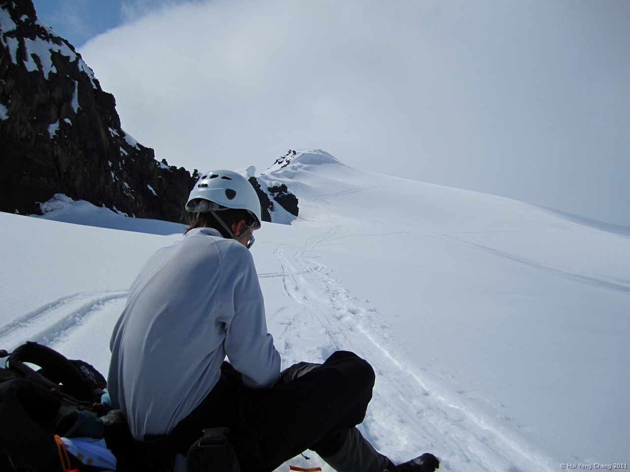 Climbing up a steep snowfield with your crampons balling-up every step you took was very unnerving, ehhh... coming down would be even worst :(
