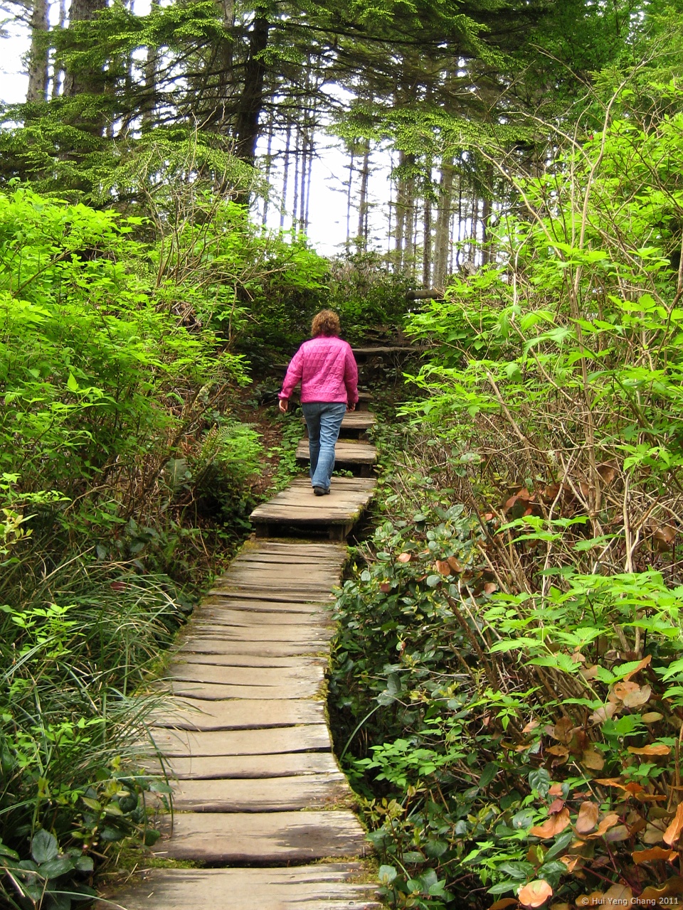 Woke up to another rainy and gloomy day. We stopped at the ranger station to inquiry the hiking conditions. Not surprisingly, it was reported that most trails at higher elevation were still deep under snow, although we did have our snowshoes with us, breaking trail and postholing in a viewless day just didn't seem appealing at all. So we decided to stick to the tourist stuff, we drove to Cape Flattery, the most northwestern point in the continental US.