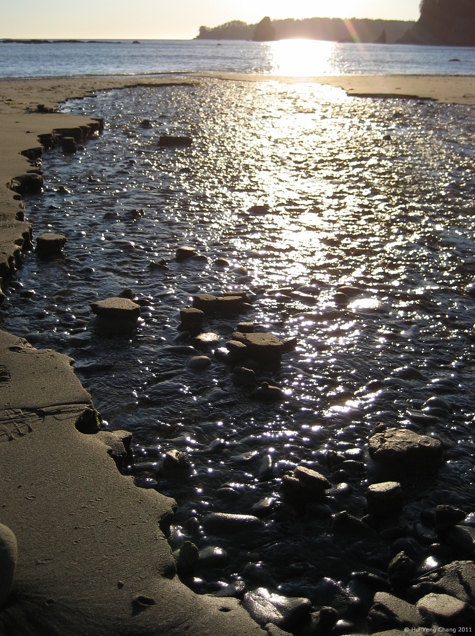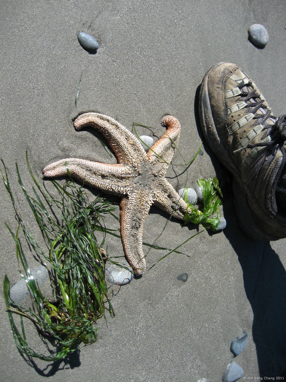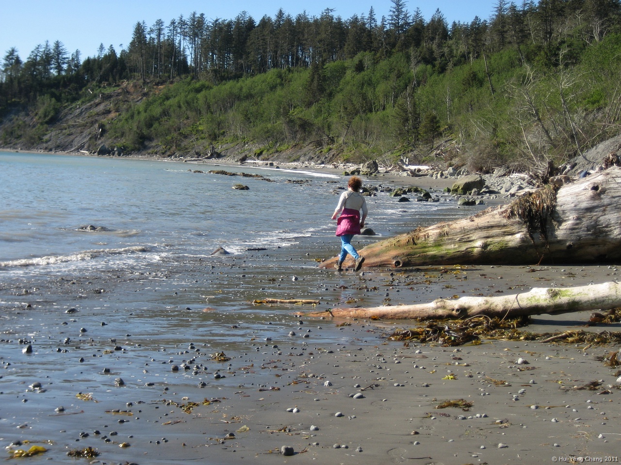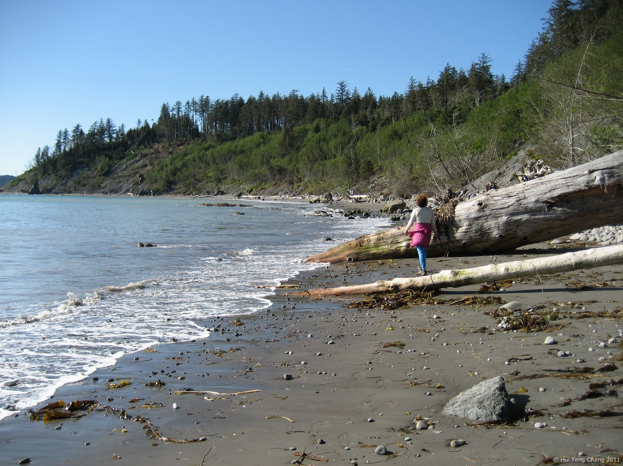 After we settle down and get familiar with our surrounding. We walked further south to visit other area. The tide was going out by now, it sure made walking along the beach, a walk on the beach! We made it to Strawberry point, spotted many white moving spots on few rock in the water. As we get closer, those were the sea lions! Ten or twenty of them sunbathing on the rocks. One of the even play peekaboo with us, it jumped in and out of the water, and pooked up its head from time to time to check on us. Very cool.