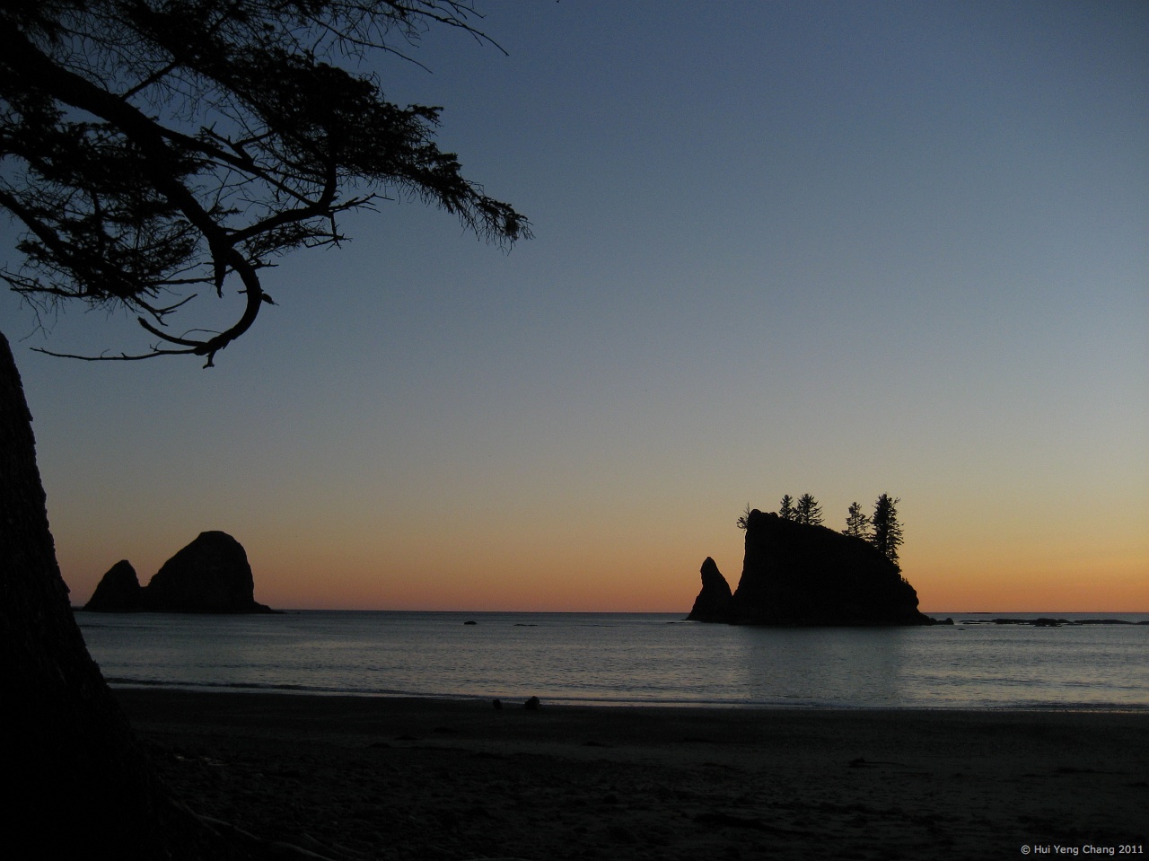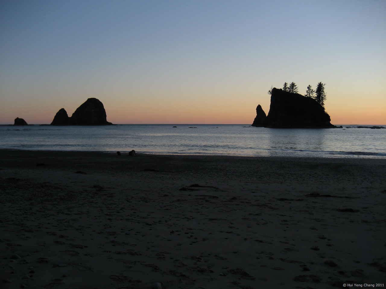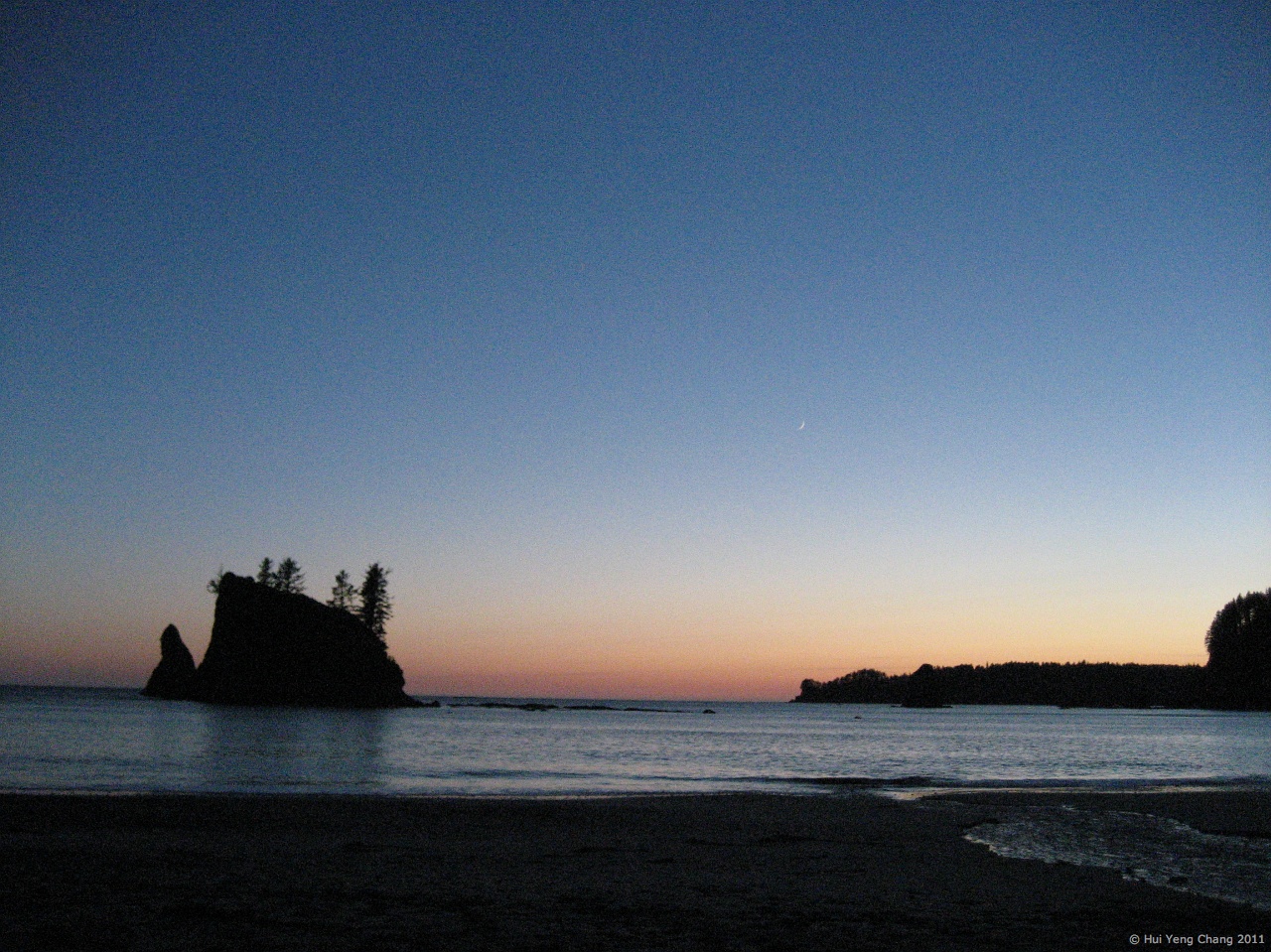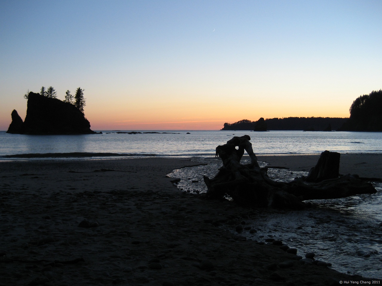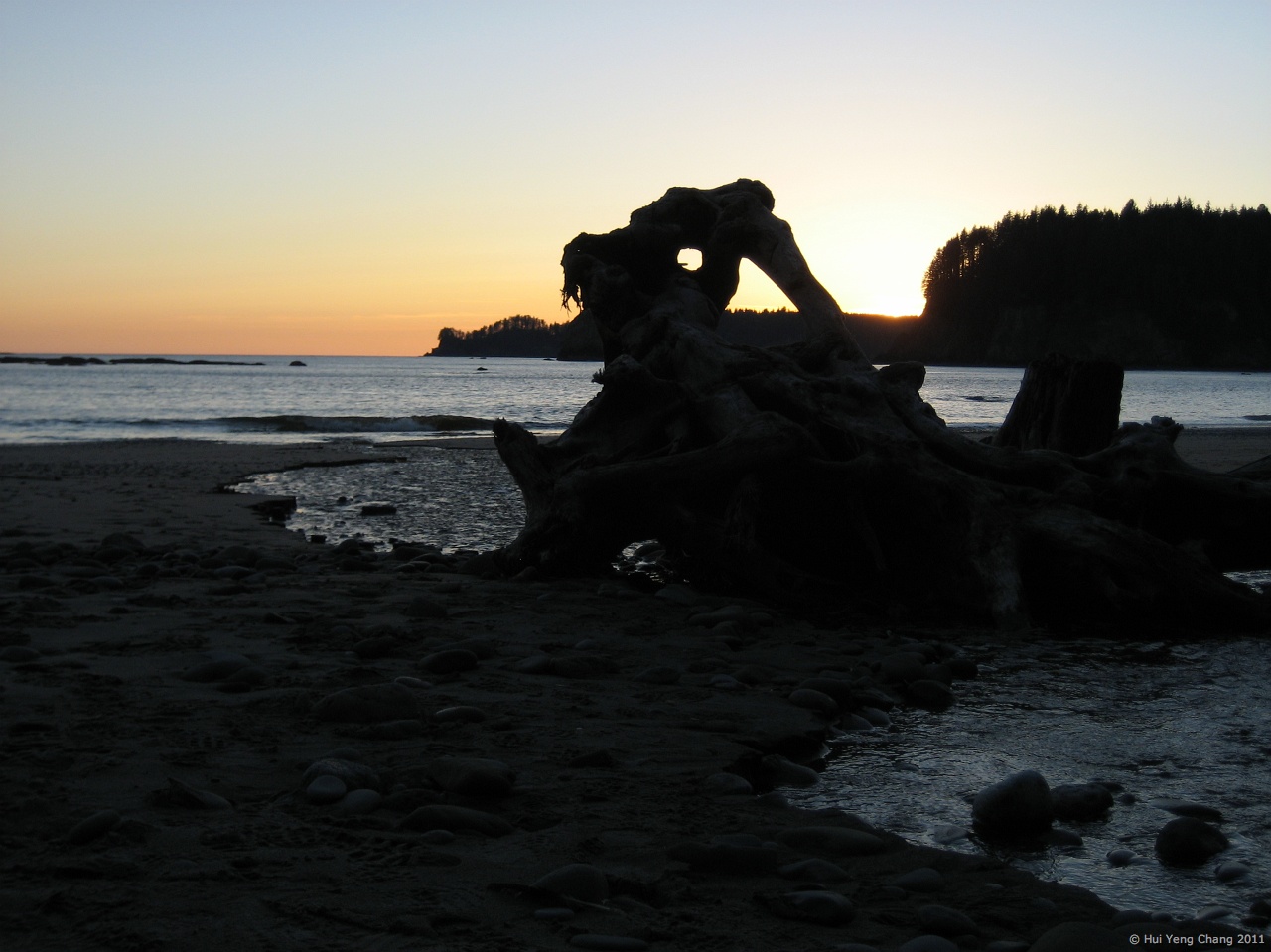 On the way back, few smaller tidal pools had formed, we looked for star fish but was fruitless. Instead there were many sea anemone, and bald eagles gliding above us. Once got back to "our" beach, we gathered wood, made fire ring thinking that we'll have a nice fire tonight, but the darkness never came. We sat around, cooked dinner and watch sunset on the beach. Around ten o'clock when we headed into the tent, it was still pretty bright out.