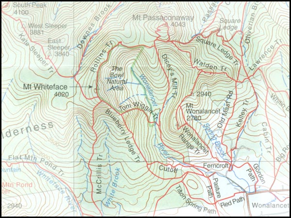 4020ft the southest most 4000fter in the Whites we're hiking up Blueberry Ledge Trail, to Rollins Trail and hike down via Dicey's Mill Trail |
